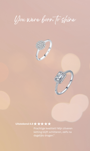 Onze sieraden worden gemaakt van echt 925 sterling zilver, afgewerkt met hoogwaardige plating voor extra duurzaamheid. We gebruiken lab grown diamant en premium zirkonia met een sprankelende heldere schittering. Al onze sieraden zijn hypoallergeen, nikkelvrij en geschikt voor dagelijks gebruik.